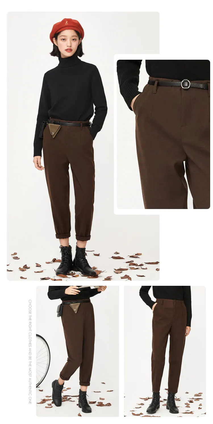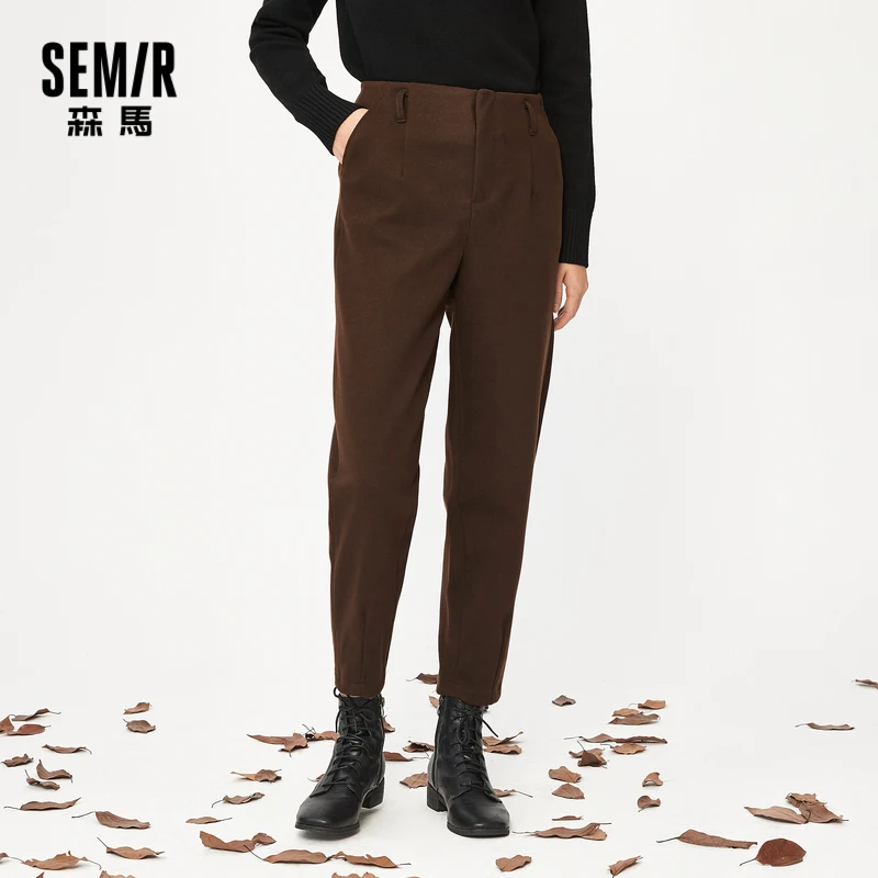 Брюки SEMIR женские свободные, прямые повседневные штаны из искусственной шерсти, штаны для бабушек, тонкие брюки в морковном стиле, Осень-зима 2021