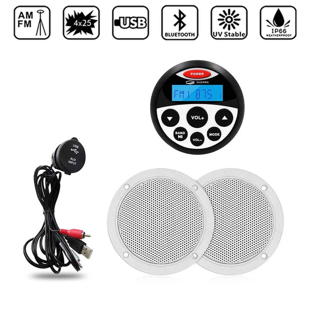 Морской аудио Bluetooth стерео радиоприемник Автомобильный MP3-плеер + 4-дюймовый морской водонепроницаемый динамик + морской USB-кабель для ATV мотоцикла