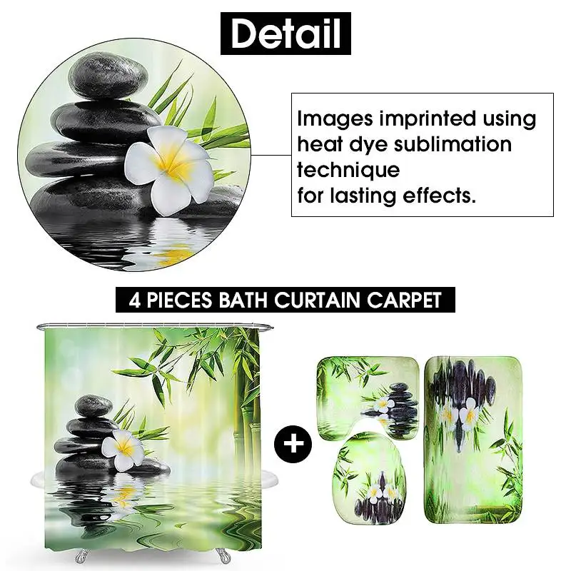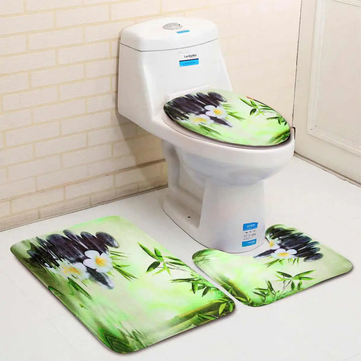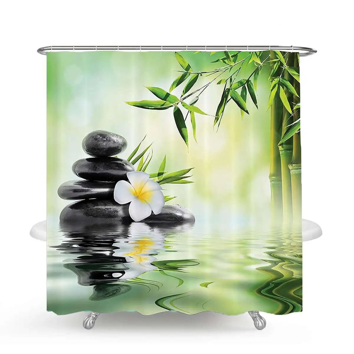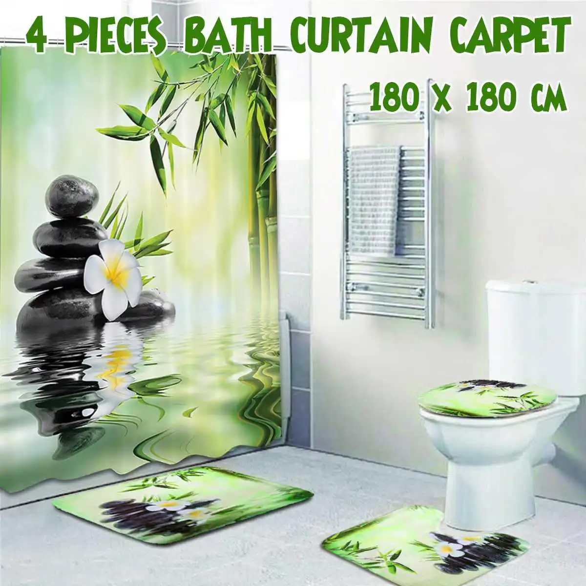 Новая занавеска для душа, украшение для ванной, 3D бамбуковая Проточная вода, зеленая бамбуковая занавеска для душа, коврик для туалета, нескользящий набор