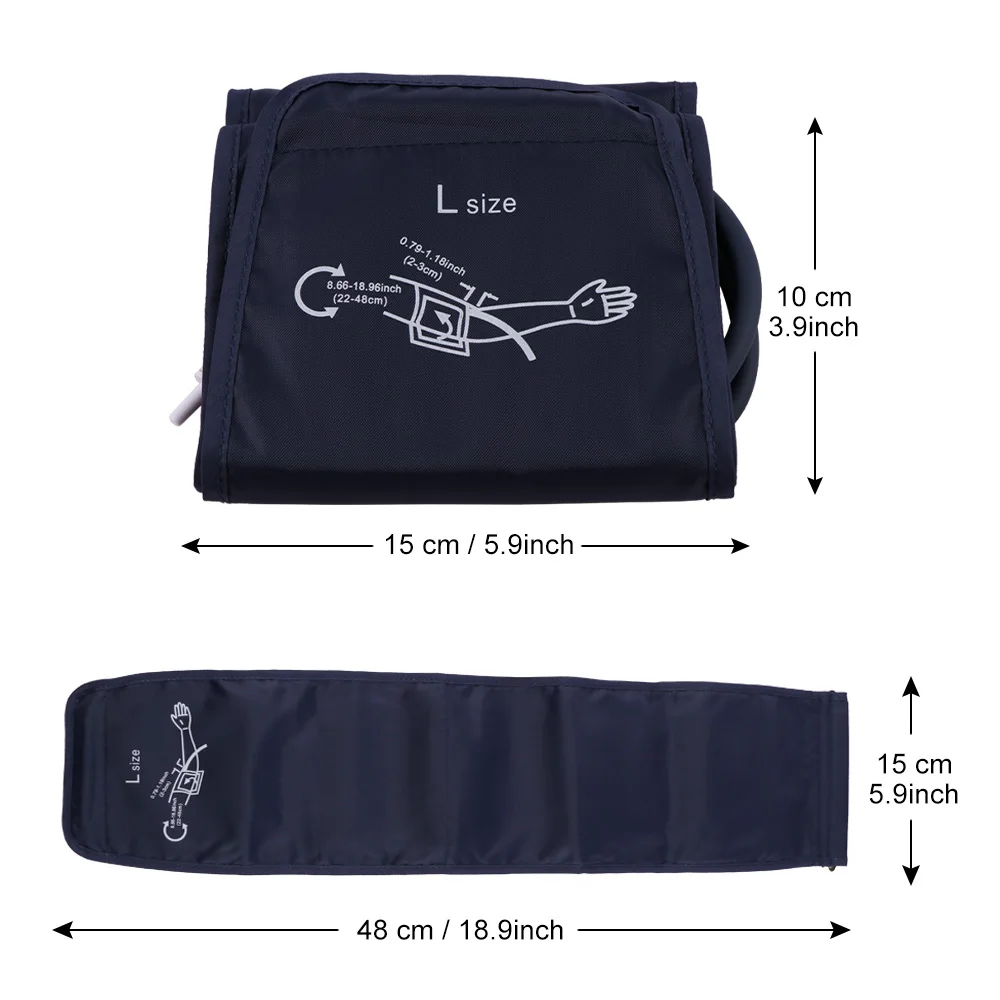 Размер продукта:1) 22-32 см (обычный размер, подходит для 99% человек)2) 22-48 см (большой размер)Посылка включает в себя:1 * Монитор артериального давления манжета