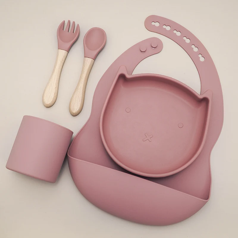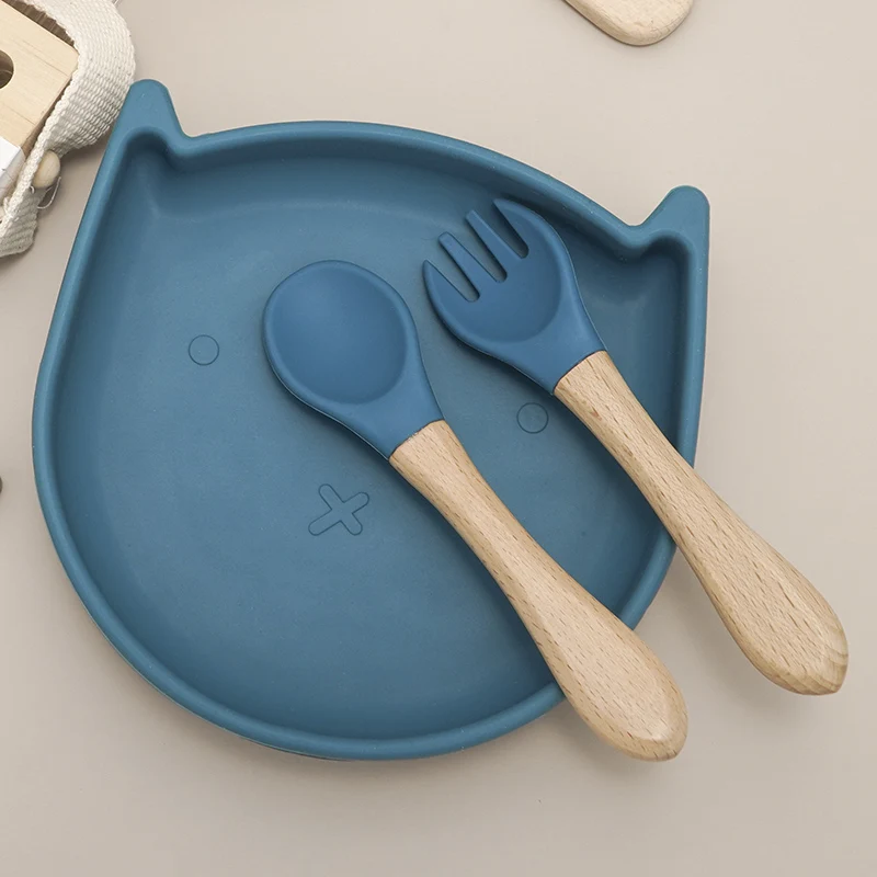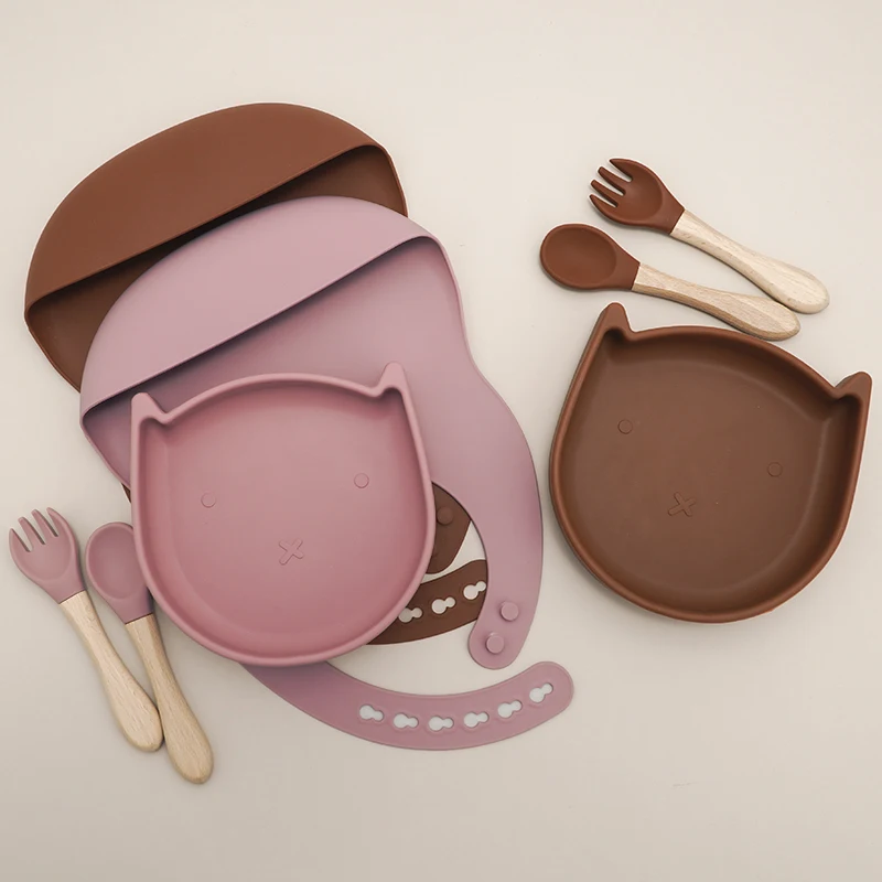 Оптовая продажа, безопасная детская посуда, новая индивидуальная силиконовая миска в форме животного для младенцев, 100% пищевой силикон, ложка, вилка