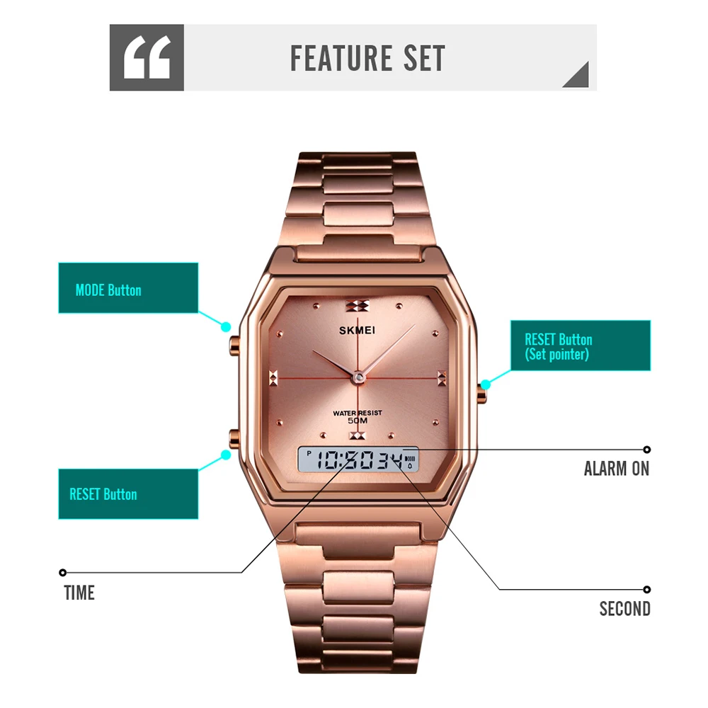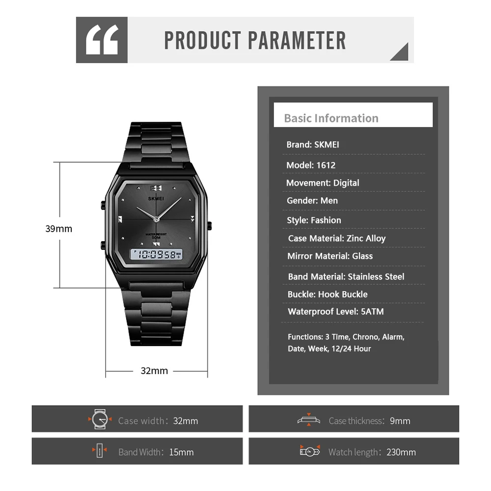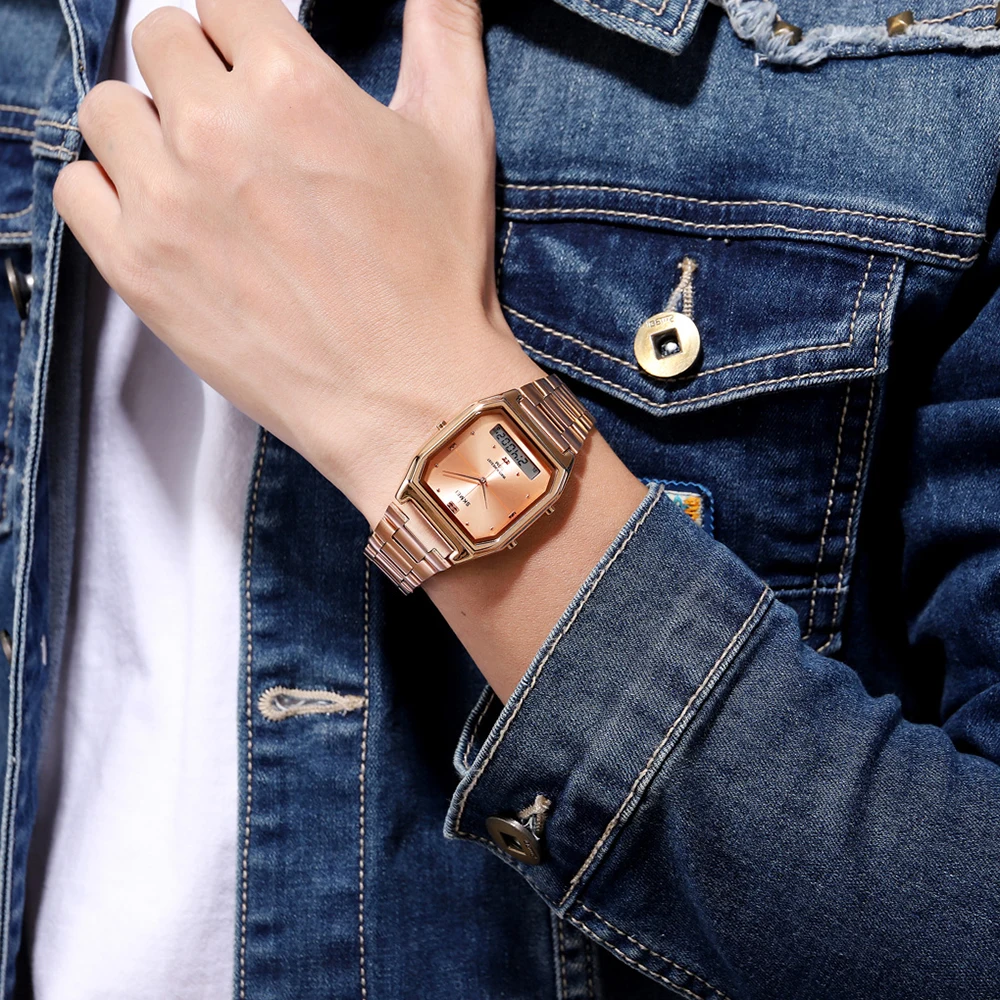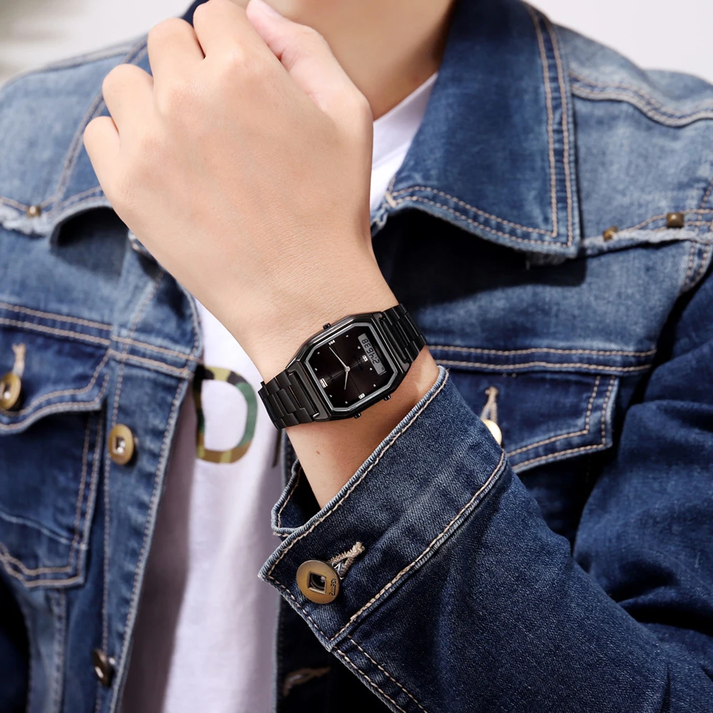 Часы наручные мужские цифровые электронные, модные водонепроницаемые спортивные деловые, с двойным дисплеем, 5 АТМ, для повседневной жизни