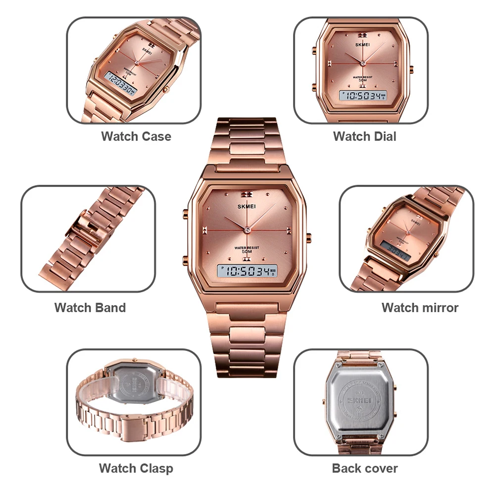 Это модные мужские часы с функциями хронографа, будильника, даты и недели. Уровень водонепроницаемости: 5 атм идеально подходит для занятий спортом. 3 режима времени подходит для деловых мужчин, которые всегда в командировке. Отличная идея для подарка! Особенности: Модные часы с ультралегким весом и ультратонким корпусом значительно показывают ваше очарование и индивидуальность. Цифровой механизм обеспечивает более точное Отображение времени. Удобный ремешок для часов подходит для вашей кожи. 3 режима времени, подходит для деловых мужчин, которые всегда в командировке. Функции: 3 раза, хронограф, будильник, дата, неделя, 12/24 часов. Водонепроницаемость 5 АТМ для повседневного использования, например, мытье рук и лица, попадание под дождь, плавание, не подходит для горячей воды или сауны. Не нажимайте никакой кнопки, когда она находится в воде. Подходит для повседневной жизни, занятий спортом или работы, замечательные рождественские и праздничные подарки для семьи, друзей и многого другого. Примечание: 1. Поддержка повседневной водонепроницаемости (не подходит для горячей воды или сауны). Не нажимайте никакой кнопки, когда она находится в воде. 2. Цвет может немного отличаться из-за различных настроек монитора и условий освещения. Пожалуйста, имейте в виду, спасибо. 3. Возможны отклонения в 1-3 мм из-за ручного измерения. Технические характеристики: Цвет: розовое золото/серебро/черный (на выбор) Механизм: Цифровой Пол: Men Стиль: Модный Материал корпуса: цинковый сплав Материал зеркала: стекло Материал браслета: нержавеющая сталь Пряжка: пряжка с крючком Уровень водонепроницаемости: 5 атм Аккумулятор: SR920 Чехол Размеры: 39*32*9 мм/1,5*1,3 * 0.4in Ширина ремешка: 15 мм Длина Часов: 230 мм Вес часов: 55 г/1,9 унции Размер посылка: 12*6*4 см/4,7*2,4 * дюйма Вес посылка: 61 г/2,2 унции Комплекпосылка ция: 1 * часы
