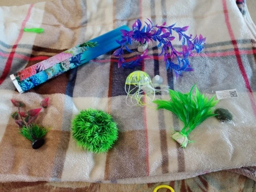 Посылка не отслеживалась- это единственный минус товара. Но это полностью компенсируется ценой заказа. Небольшой запах пластика присутствует, перед посадкой в аквариум рекомендую промыть с моющим средством дать полежать в чистой воде.