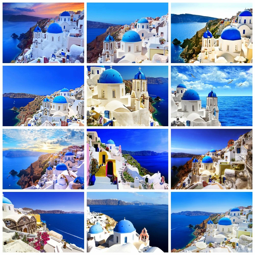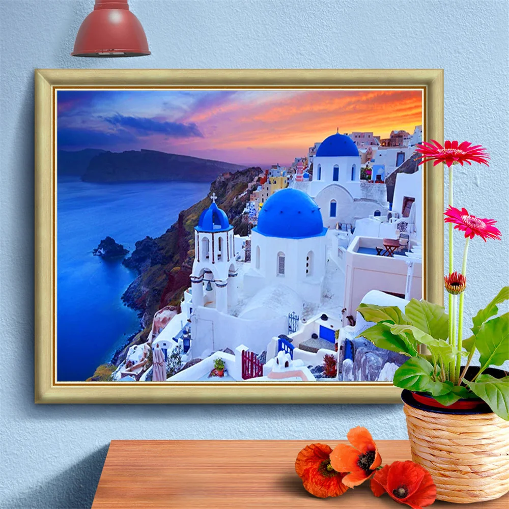 HUACAN 3D полный квадрат Алмазная картина город ремесло набор Новое поступление Алмазная вышивка пейзаж Санторини мозаика Приморский настенное искусство