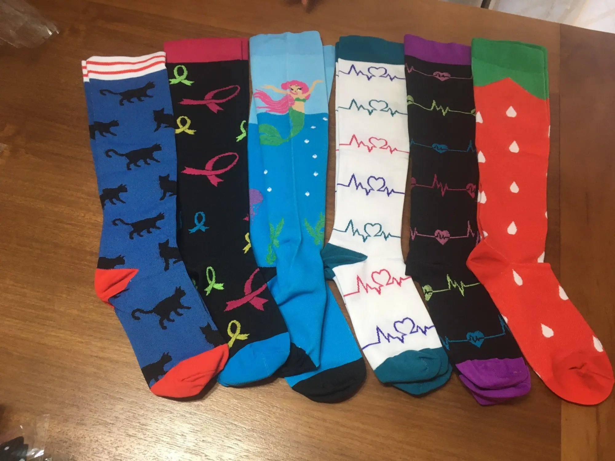 Они очень милые. Они прибыли очень быстро. Они Довольно плотные, просто нужно попробовать их в рабочее время. Для среднего размера лучше заказать размер S-M, чтобы они дали немного давления на ноги.