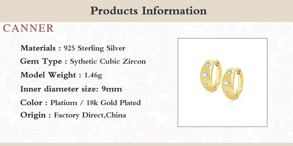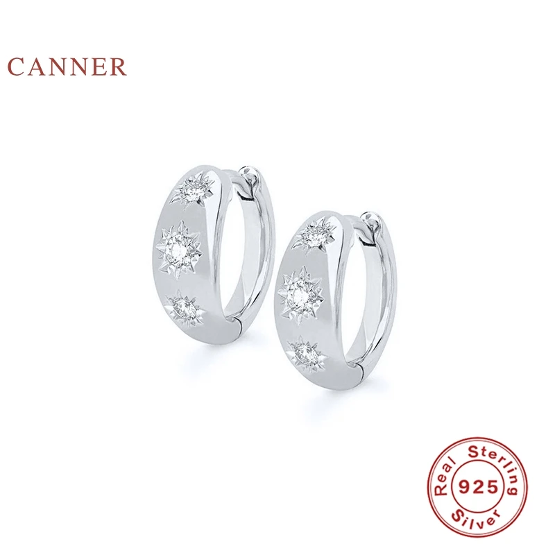Женские серьги с восьмиугольным узором в виде звезды CANNER, 100% Настоящее серебро 925 пробы, обручи, ювелирные украшения