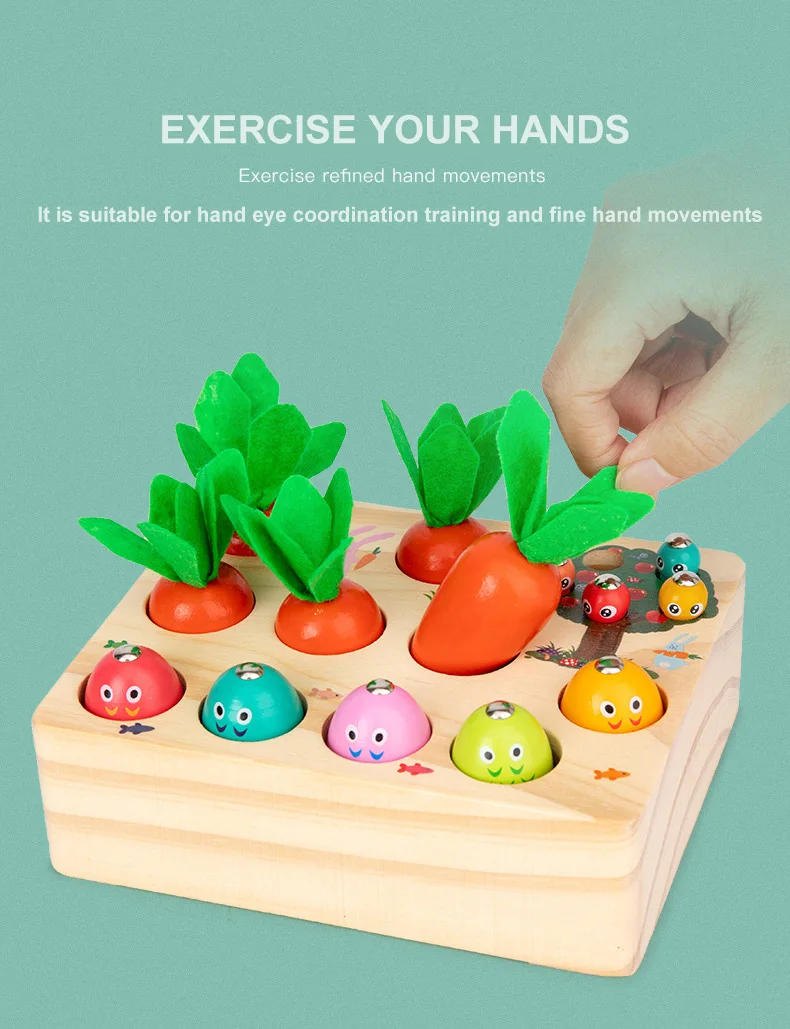 Игрушки Монтессори магнитные для рыбалки для детей, деревянные детские Игрушки для раннего развития, червь, вытягивающая морковь, 3d Рыба, детская игрушка