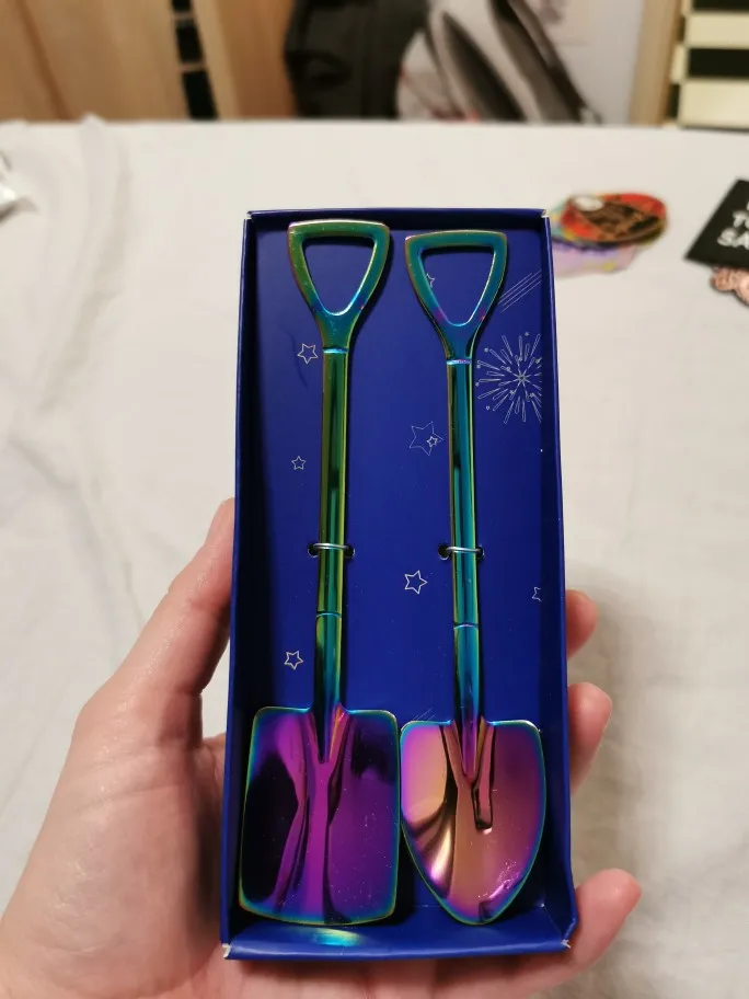 Отличные ложки, выглядят стильно . Выполнены из довольно хорошего сплава. Пришли довольно быстро. Отличный маленький подарок, думаю друзьям понравятся