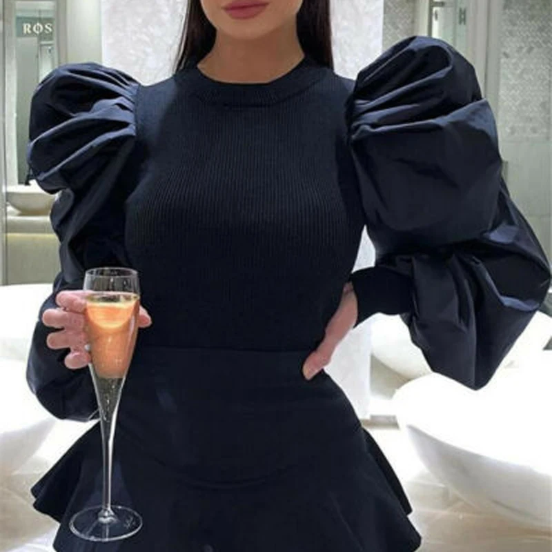 Женские топы с пышными рукавами, пуловер, свитер, блузка, свободный...