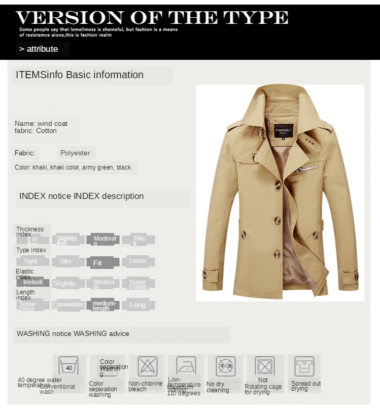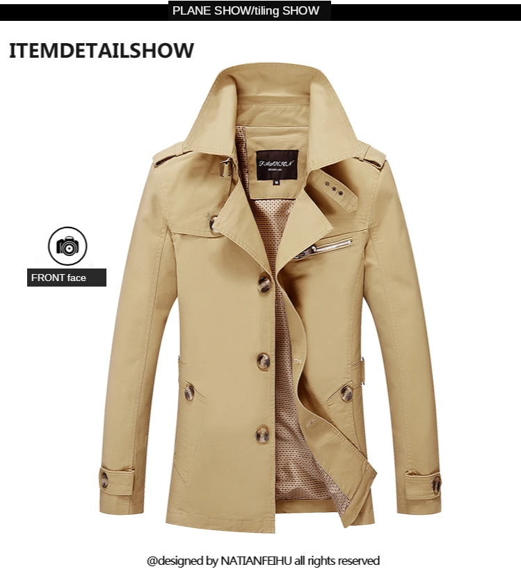 Тренчкот Мужской Хлопковый, на весну и осень, офисные жакеты, разме...