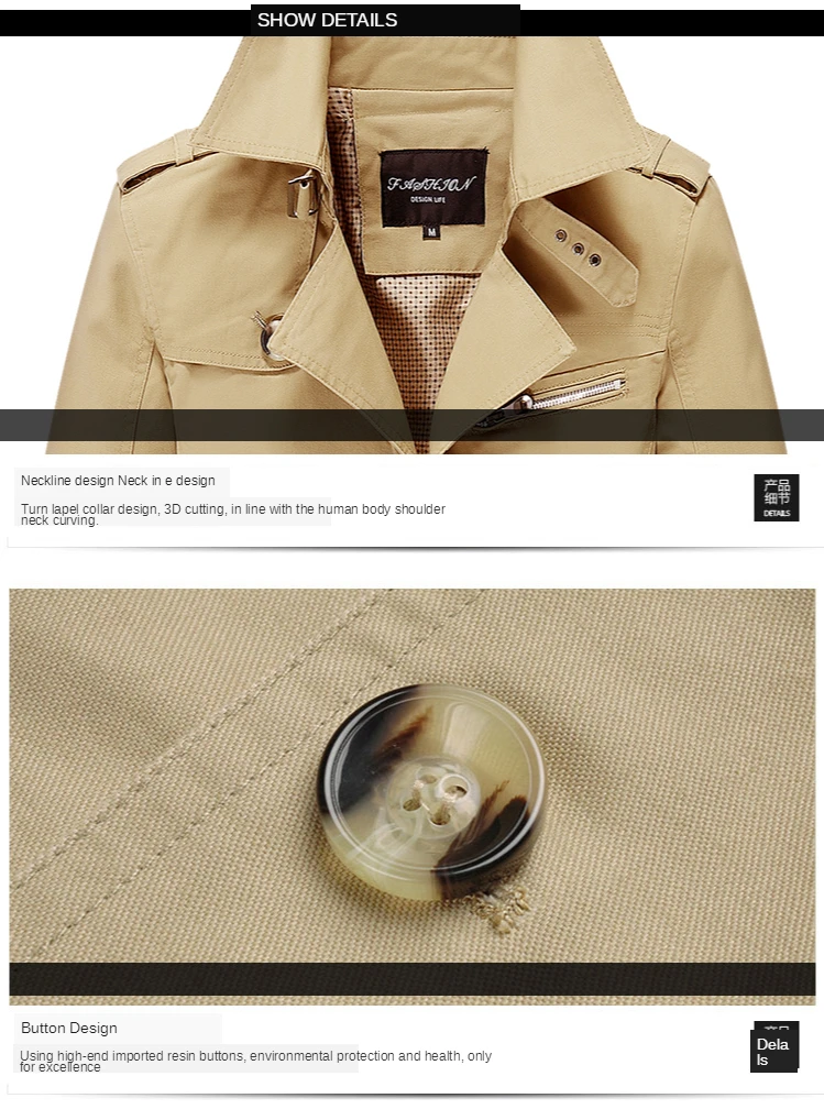 Весна-Осень мужские длинные тонкие тренчи, мужские хлопковые притал...