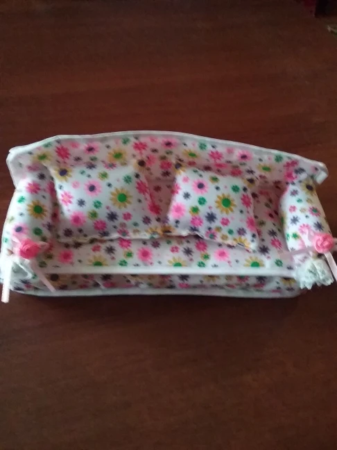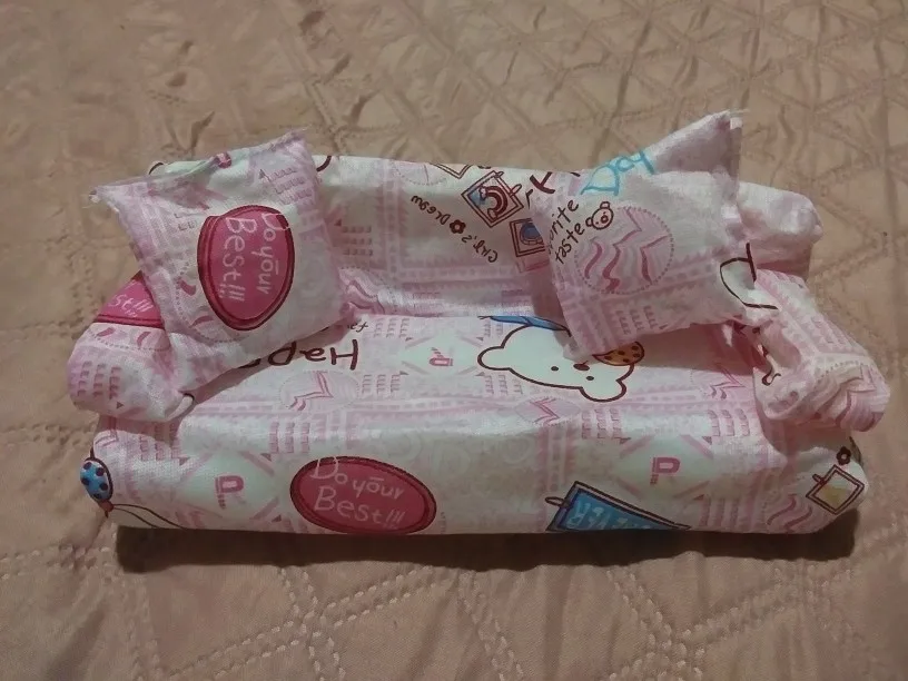 1 комплект, новый милый миниатюрный тканевый диван с цветами и 2 подушками для кукол, детский игровой домик, игрушка, мебель для кукольного дома