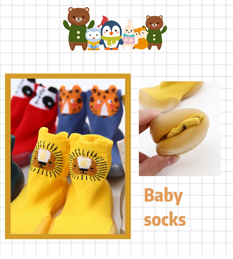 ОписаниеОсобенностиХлопковый носок делает ребенка комфортнымИскусственный мультяшный носок выглядит очень милоМягкая резиновая подошва настолько не скользит, что защитит вашего ребенкаПараметрыМатериал: хлопок + спандекс + резиновая подошваЦвет: красный, розовый, коричневый, желтый, зеленый, синий светильник-коричневый, светло-голубой, желтый серый светильник-желтый, серый белый,Размер:S = 11,5 см подходит для ребенка 3-6 месяцевM = 12,5 см подходит для ребенка 6-12 месяцевL = 13,5 см подходит для ребенка 12-18 месяцевРазмер XL = 14,5 см подходит для ребенка 18-24 месяцевXXL = 15,5 см подходит для ребенка От 2 до 3 лет годаПосылка1 пара обувиПримечание:▲ Из-за различных методов измерения может возникнуть погрешность в 1-3 см▲ Из-за различных мониторов и освещения изображение может не отражать фактический цвет изделия