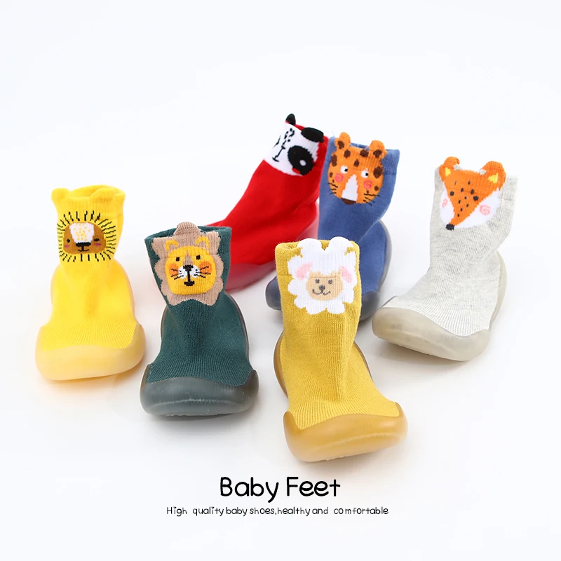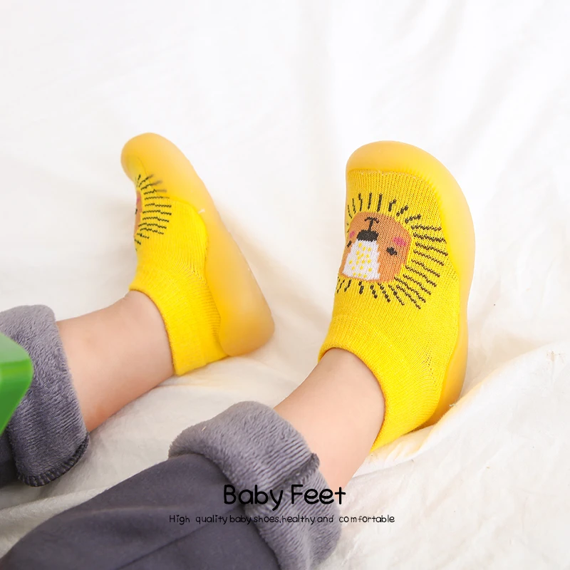 Обувь для новорожденных, удобная, нескользящая, с мультяшным рисунком, на мягкой резиновой подошве