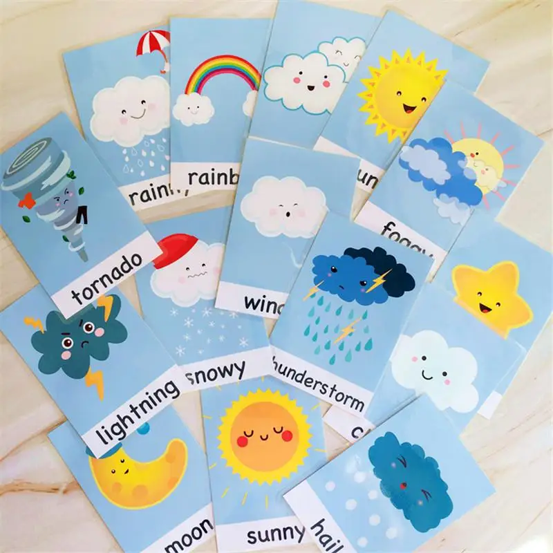 15 шт., погодные флэш-карты, водонепроницаемые, Монтессори, английс...