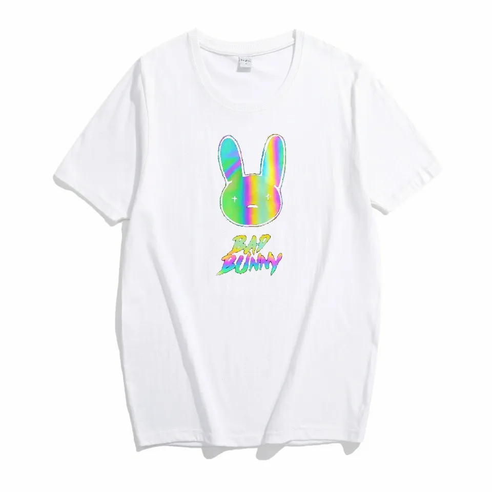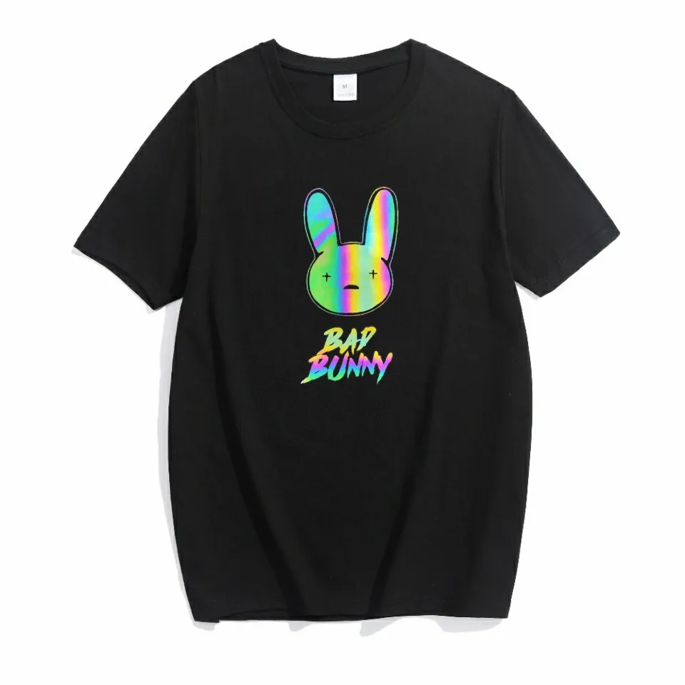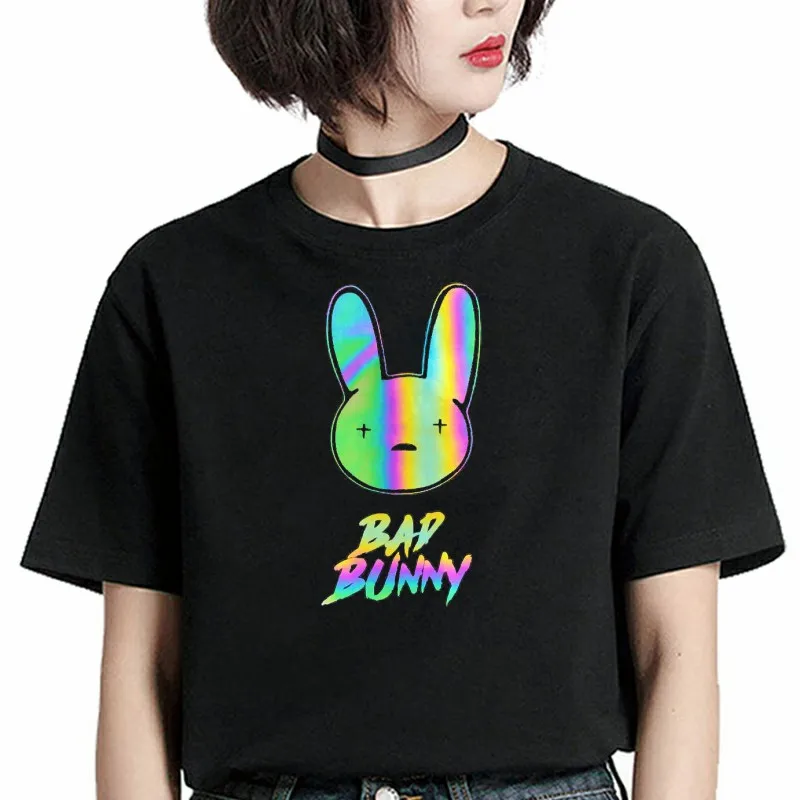 Женская Светоотражающая рубашка Bad Bunny Y2k, хлопковая, с коротким рукавом, большого размера