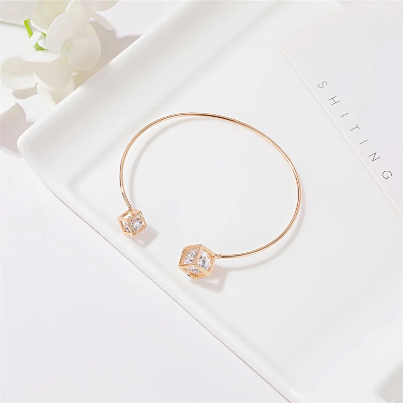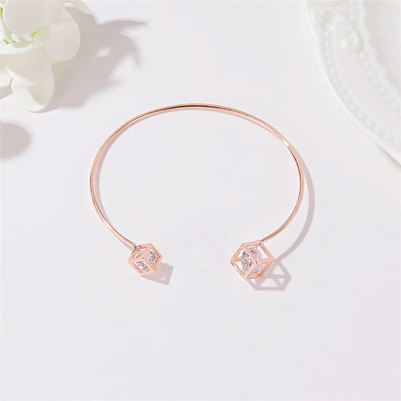 Модный простой золотистый розовый золотистый циркониевый модный бра...