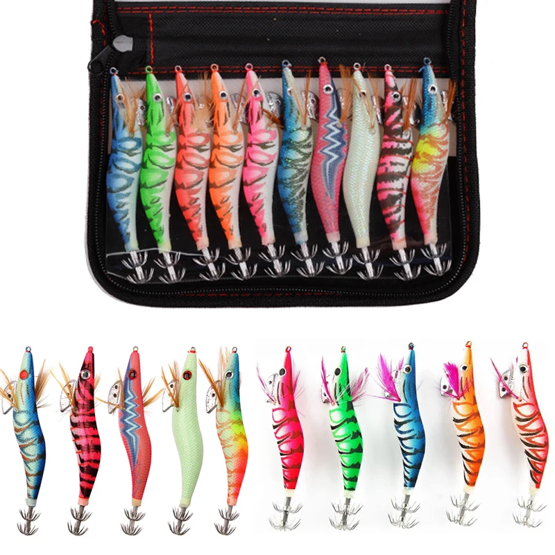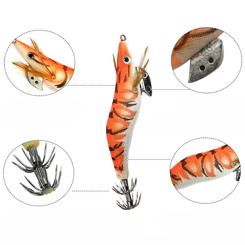 10 шт.пакет Новый кальмар крюк деревянная креветка джиг оснатка приманки 12g-21 г искусственные приманки 3D глаза световой Каракатица Крючки осьминог приманка для рыбалки