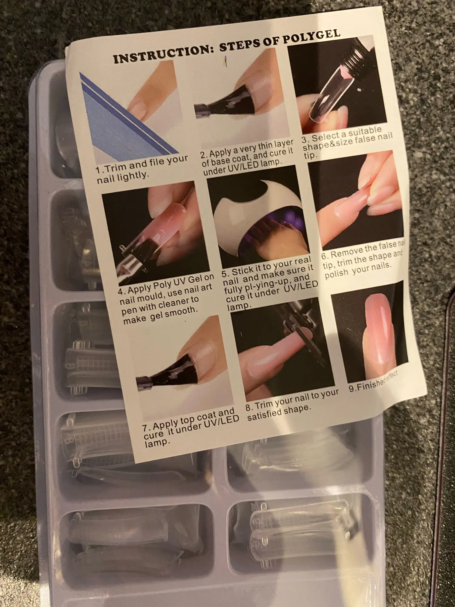 Мои ногти действительно короткие и гибкие, поэтому хотел попробовать этот набор из полигеля. Я купил хорошую лампу и этот комплект. Я никогда не совершал ничего похожего на поддельные ногти, поэтому был удивлен, что я на самом деле это сделал! Легко наносится, а телесный розовый действительно красивый. Стороны немного запутаны, но это, вероятно, из-за меня. Мне очень нравится комплект!