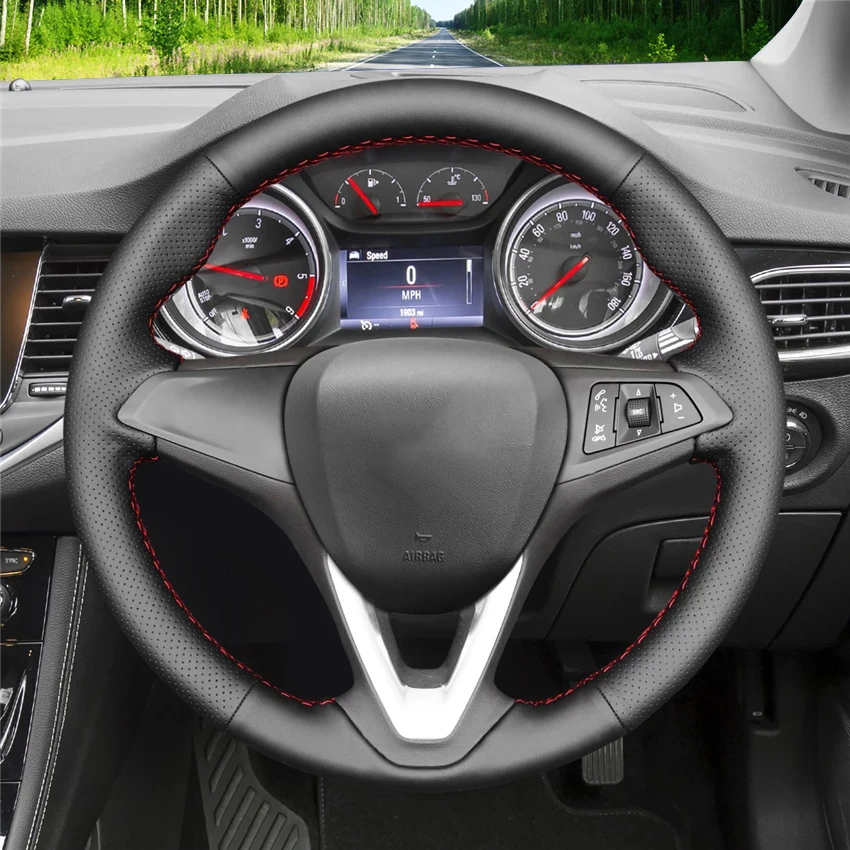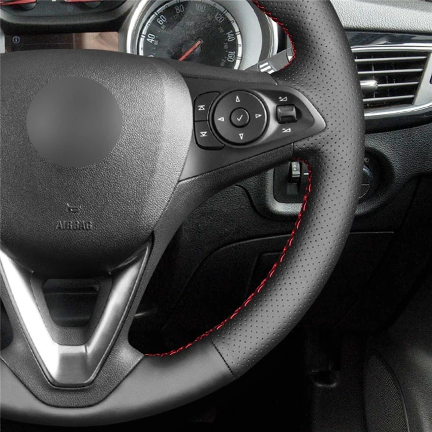 Кожаный чехол на руль с красным маркером для Opel Astra (K) Corsa (...
