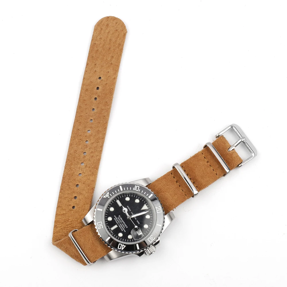 Ремешок из мягкой замши Zulu для мужских часов, браслет из нержавеющей стали с квадратной пряжкой, с кожаным ремешком в стиле наручных часов, 18 мм 20 мм 22 мм 24 мм, синий черный коричневый
