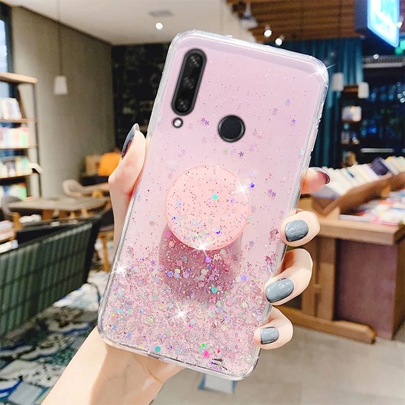 Чехол-подставка для Huawei Honor 9A, 9S, 9C, 9X, 8A, 8C, 8S, 8X, 7A, 7C, 7X, X10, силиконовый, с серебристой фольгой