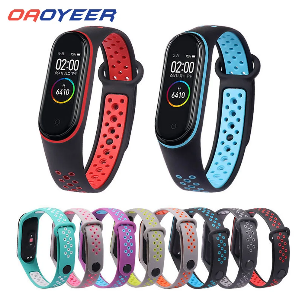 Ремешок из дышащего силикона для Mi Band 3 4 5, спортивный браслет ...