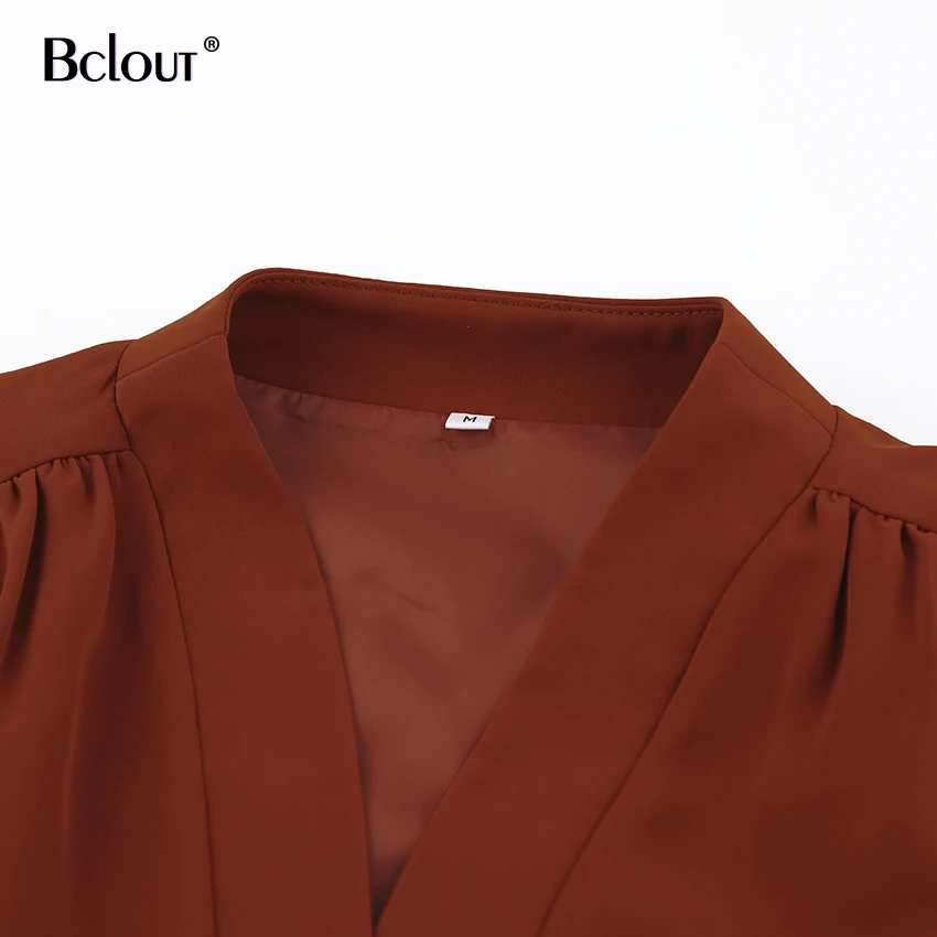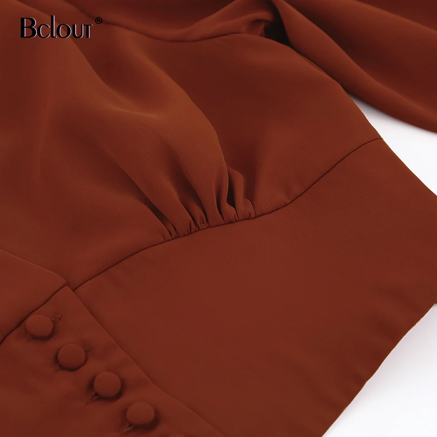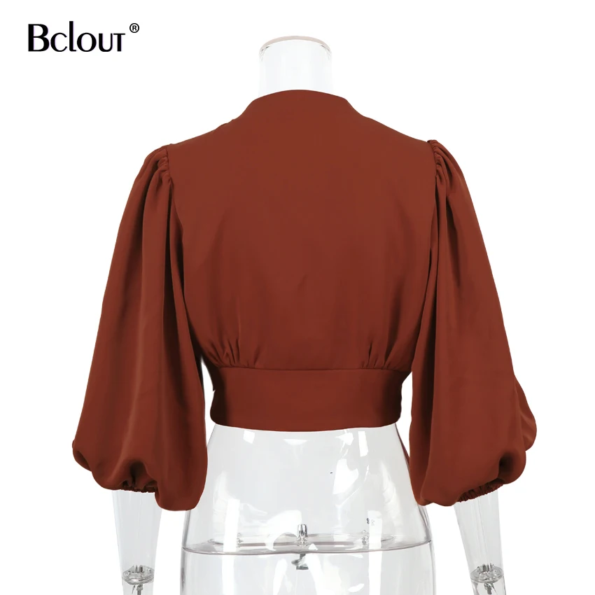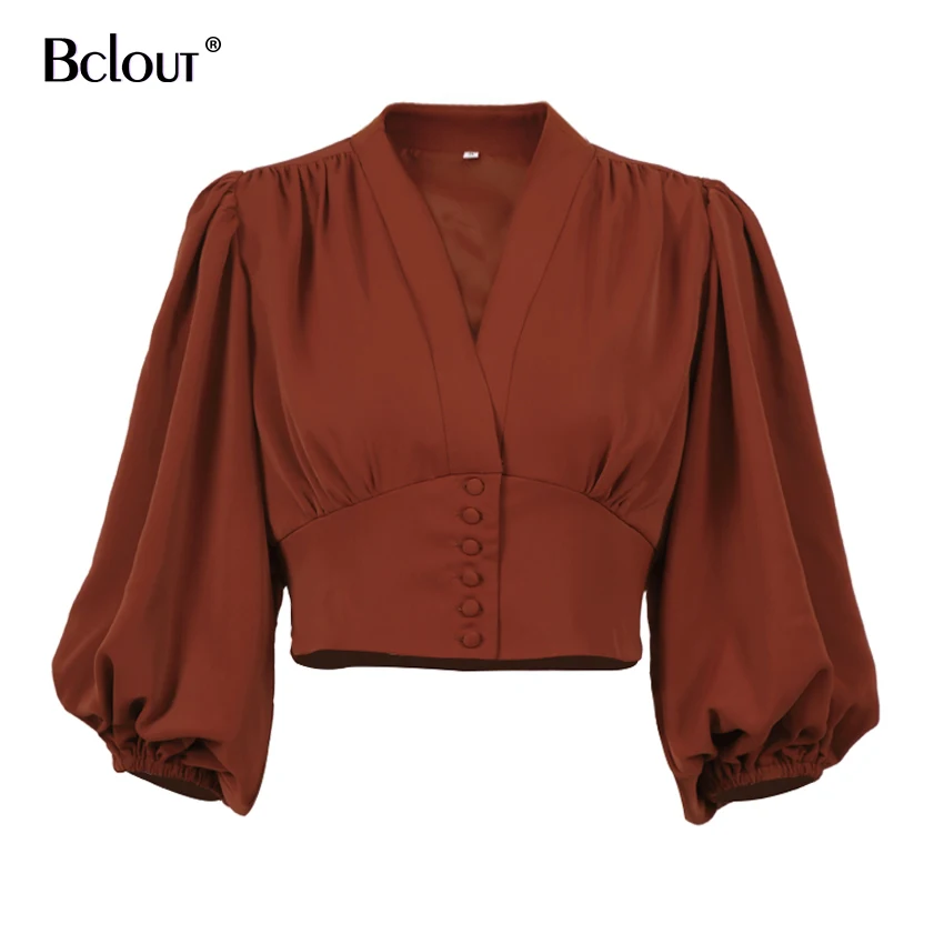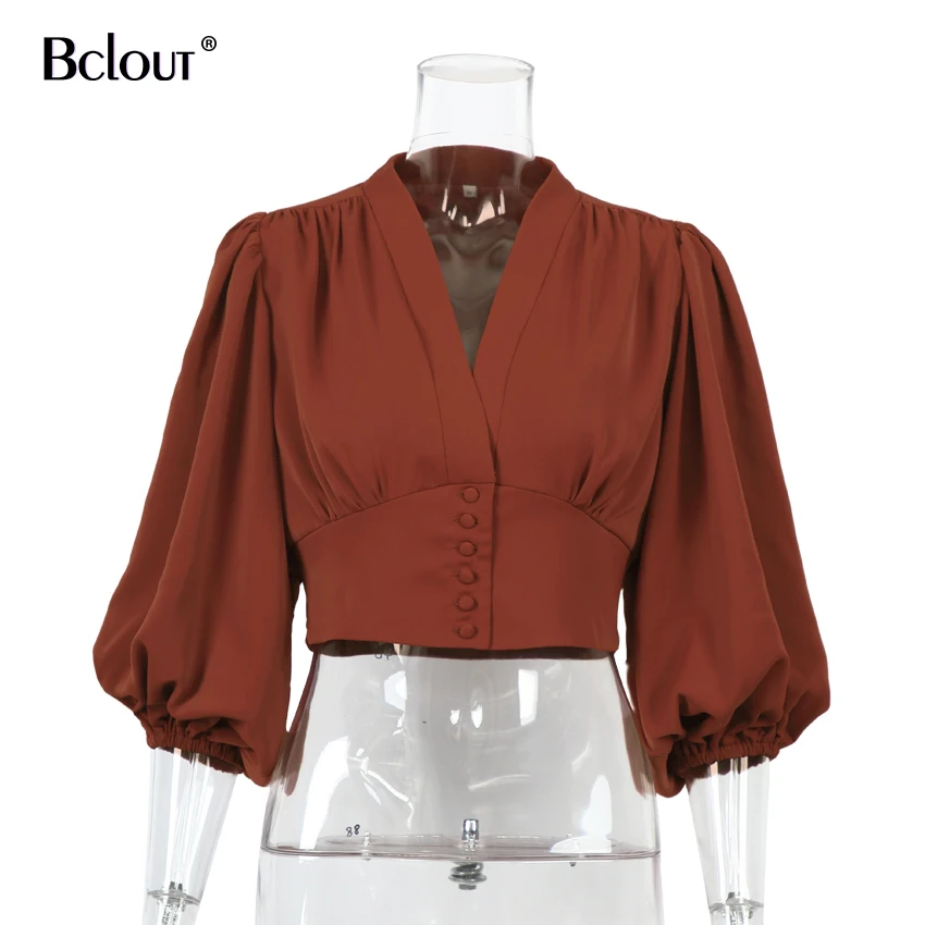 Блузка Bclout женская с V-образным вырезом, элегантная белая модная блузка с длинным рукавом, на пуговицах, с рукавом фонарик, на осень, новый год