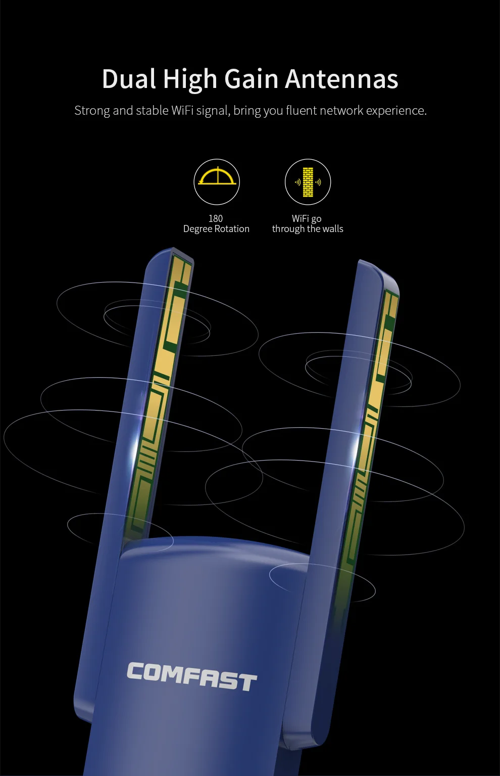 USB Wi-Fi адаптер 1300 Мбитс 5 ГГц Bluetooth совместимая 4,2 Ethernet 2 * 3dbi Антенна ПК Wi-Fi для компьютера BT4.2 музыкальный ресивер карта
