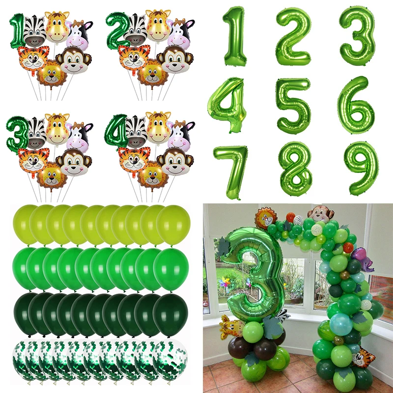 Зеленый номер Фольга воздушные шары сафари джунгли вечерние ребенка игр тема джунгли для вечеринки, дня рождения вечерние лес вечерние украшения детского дня рождения