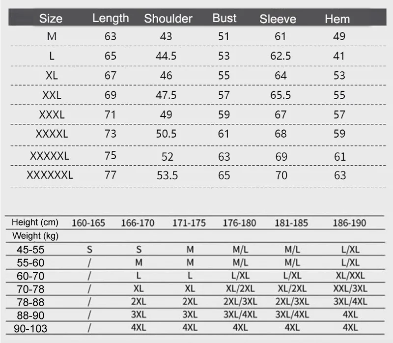 sizeM L XL XXL XXXL XXXXL 5XL 6XL 7XL