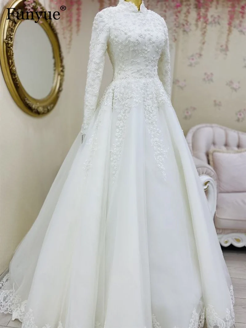 Элегантное мусульманское свадебное платье Funyue с длинным рукавом ...
