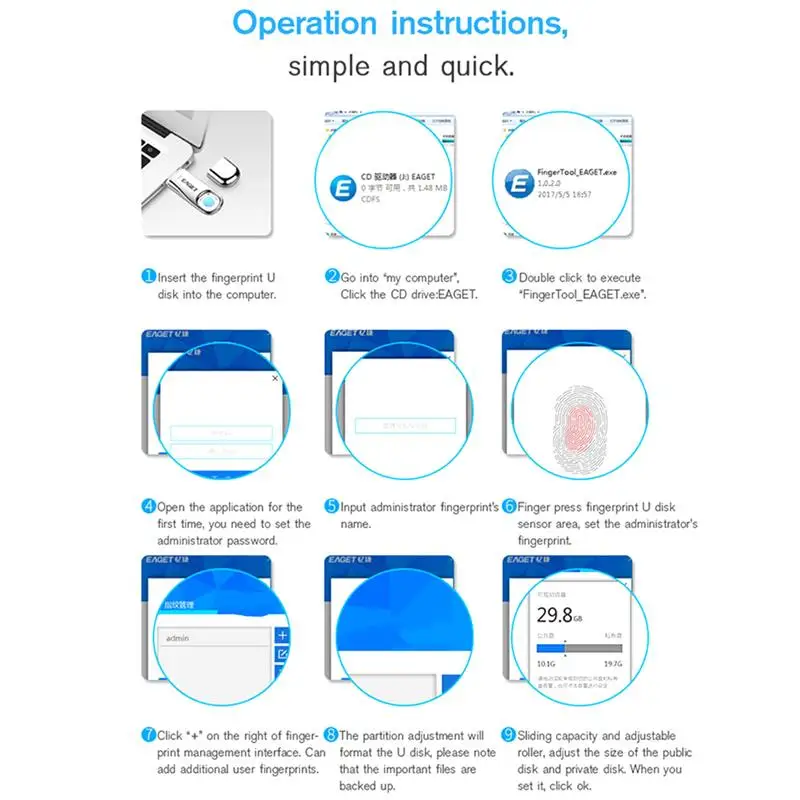 Флэш-накопитель Eaget, USB флеш-накопитель с шифрованием, USB 3,0, с распознаванием отпечатков пальцев, флэш-накопитель 32 ГБ, 64 ГБ, USB флэш-накопитель 3 0