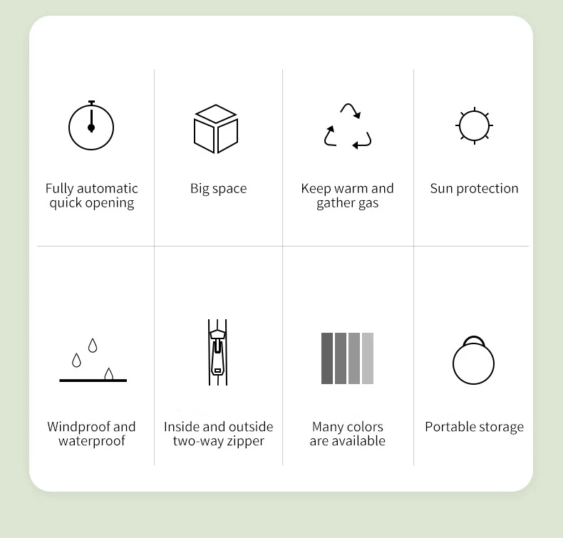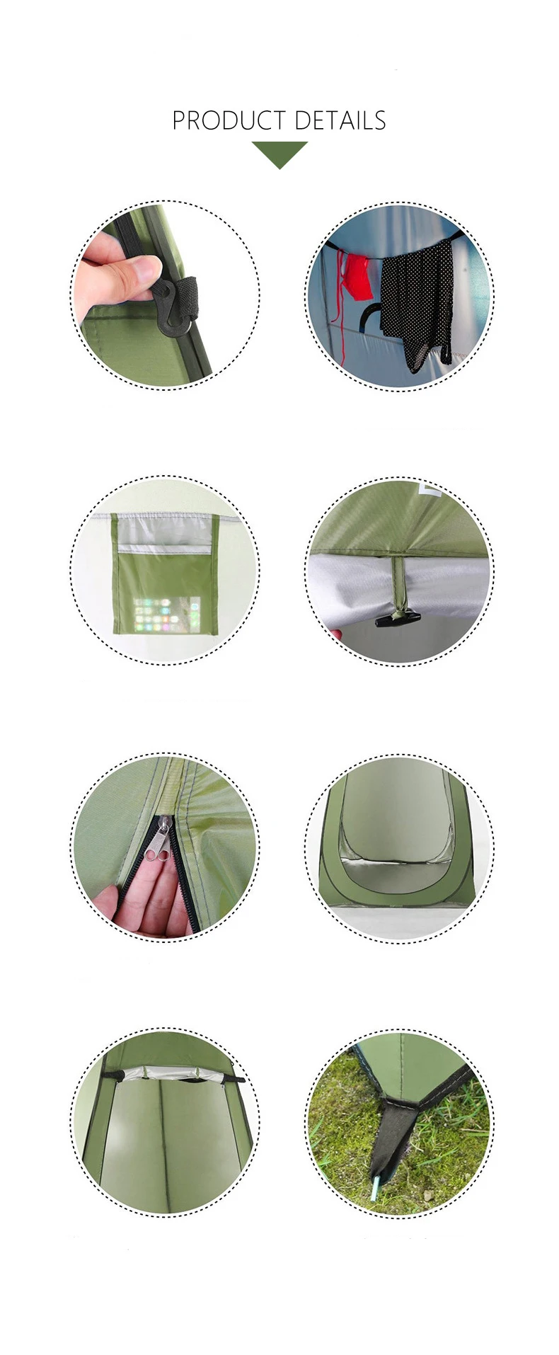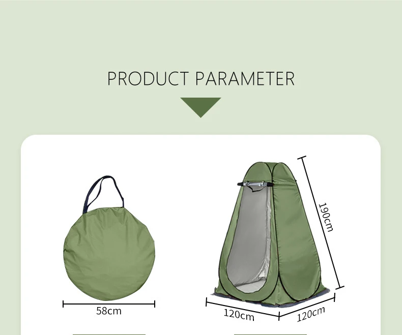 1. Инновационный всплывающий тент: Мгновенный Шатер Конфиденциальности предлагает вам мгновенное личное пространство для кемпинга ванной комнаты и использования горшков, ливней на открытом воздухе, смены одежды, для использования в качестве мягкого дождевого укрытия и многого другого. И без каких-либо проблем с утомительной установкой-обязательный аксессуар для путешествий для вашего следующего приключения! 2. Защита от солнца: Изготовлен из ткани Оксфорд для защиты от солнца. 3. Одна минута для сборки: метод строительства очень прост, и он открывается быстро за одну минуту. 4. Многофункциональность: в палатке нет нижней ткани, которая не только может менять одежду, но и используется для купания, рыбалки или в качестве мобильного туалета. 5. Легкий и портативный: весом всего 2,3 кг, это быстро-Складная и может быть носить с собой.