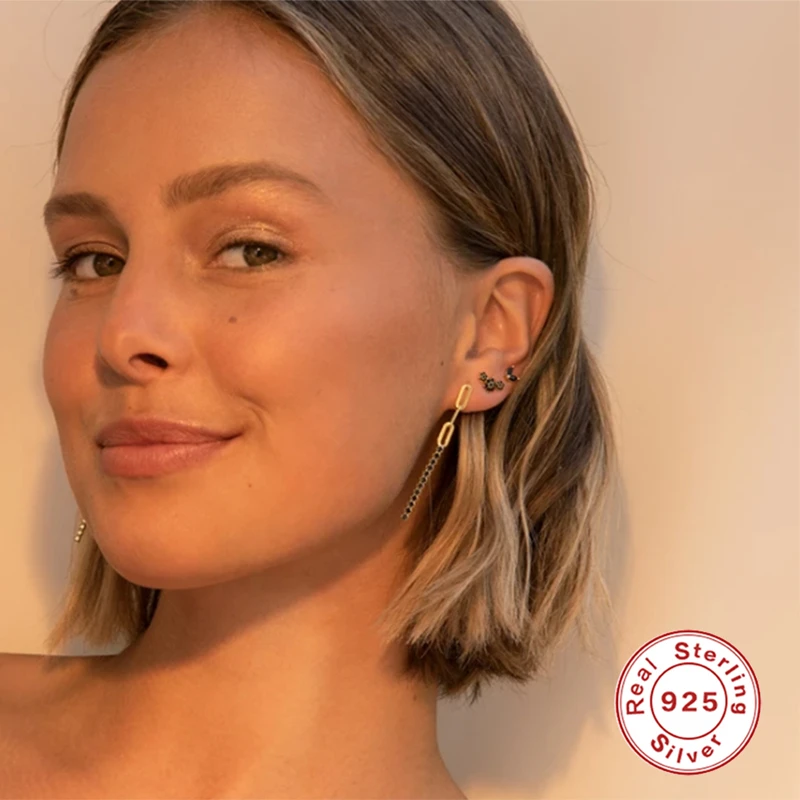 Aide 925 Стерлинговое серебро, черный и белый циркон серьги в виде цветка Форма в Корейском стиле в виде капель с кристаллами в форме женские обувь для девочек вечерние ювелирные украшения