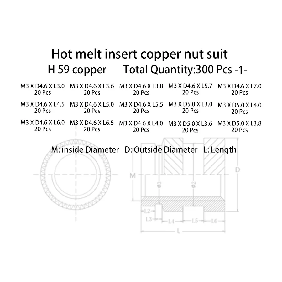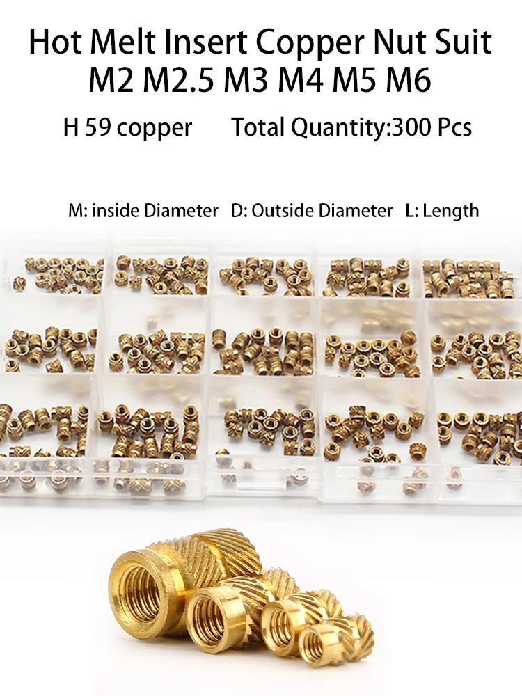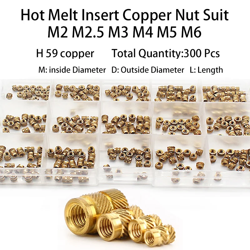 Набор гаек с резьбой для M2M2M2M3M4M5M6, латунный термостойкий набор из 300 шт.