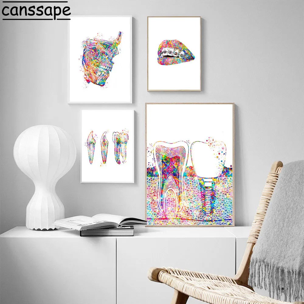 Плакаты с имплантатом зубов, акварельные художественные плакаты, Ка...