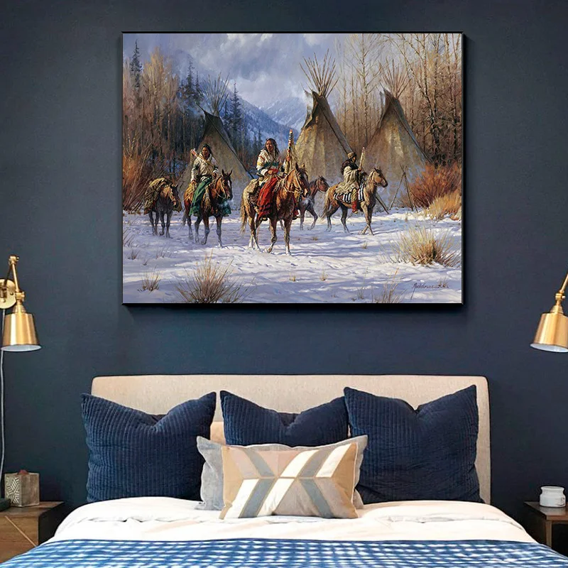 Customised size design Dropping shippingok Native American Indian Canvas Art Wall Paintings