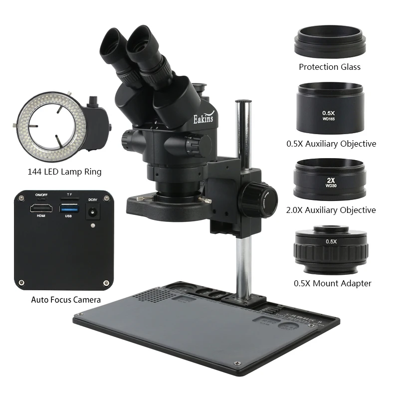 Тринокулярный стереомикроскоп с увеличением 3,5x-90X, 37 МП, HDMI, USB
