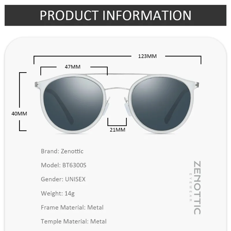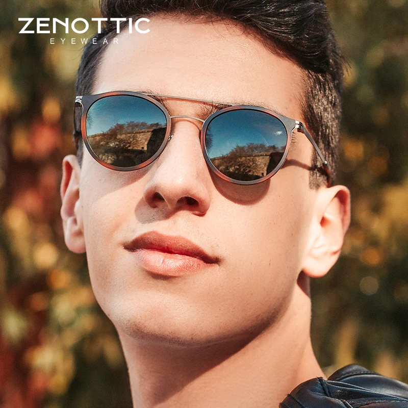 Солнцезащитные очки ZENOTTIC мужскиеженские в винтажном стиле, поляризационные зеркальные солнечные аксессуары в круглой оправе с двойной перемычкой, для вождения, UV400