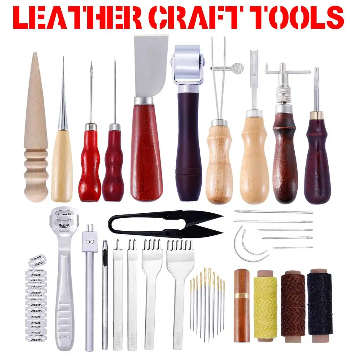 Набор инструментов для кожевенного ремесла, профессиональный комплект из 48 предметов для домашнего ручная швейная строчка, перфоратор, резное седло, аксессуары для кожевенного ремесла