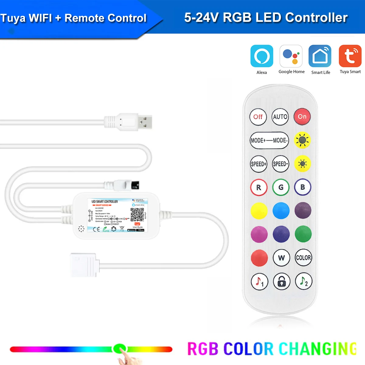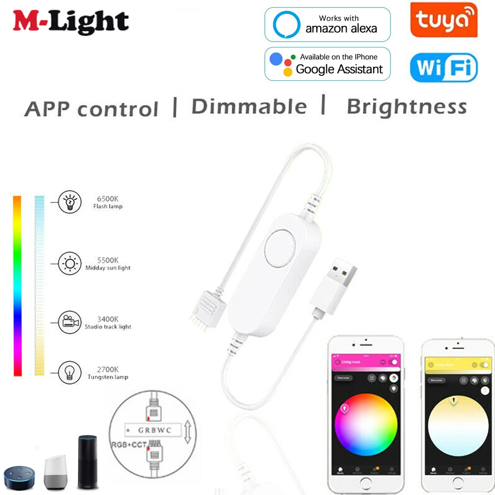 Беспроводной мини-контроллер с USB Tuya Smart Life, Светодиодная лента 5050 RGB RGBCCT, светильник ящаяся лента, работает с Alexa Google для подсветки телевизора, светильник ЕТА