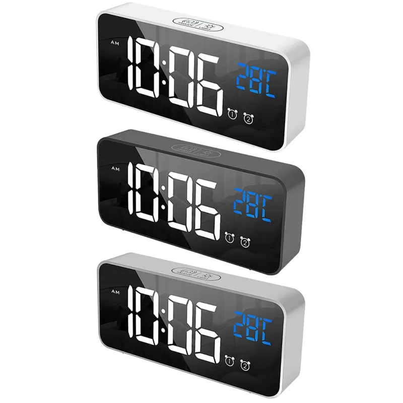 Светодиодный зеркальный будильник часы с зарядкой от USB, часы со звуковой активацией и функцией повтора, прикроватные музыкальные часы, домашние двойные сигналы