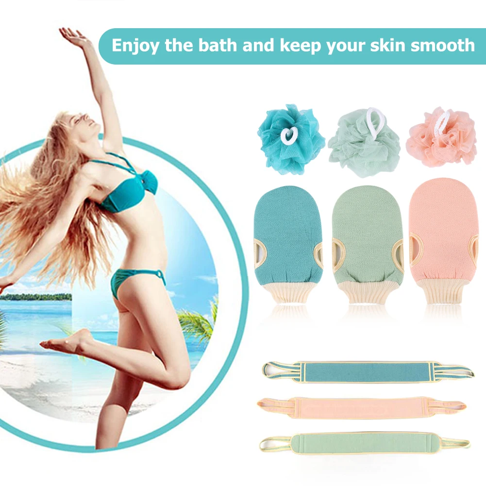 3 шт.компл. отшелушивающие перчатки из мочалки, мягкая щетка для чистки тела, для дома, гостиницы, ванной комнаты, душа, мяч, скребок для спины, набор полотенец для кожи, ванны