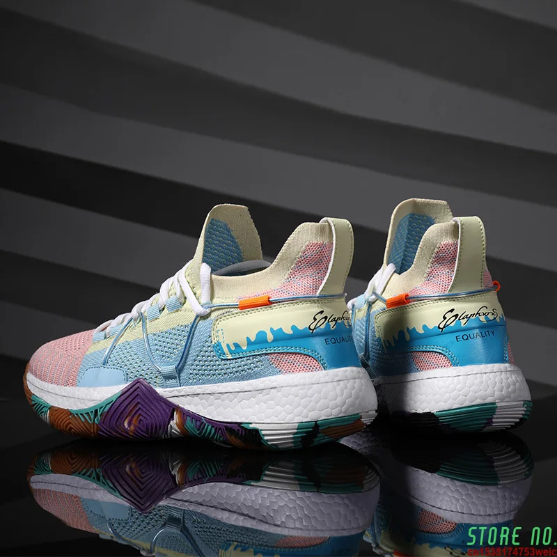 Модная Высококачественная Баскетбольная обувь Rainbow, Мужские дышащие высокие женские кроссовки, профессиональная массивная спортивная обувь для баскетбола