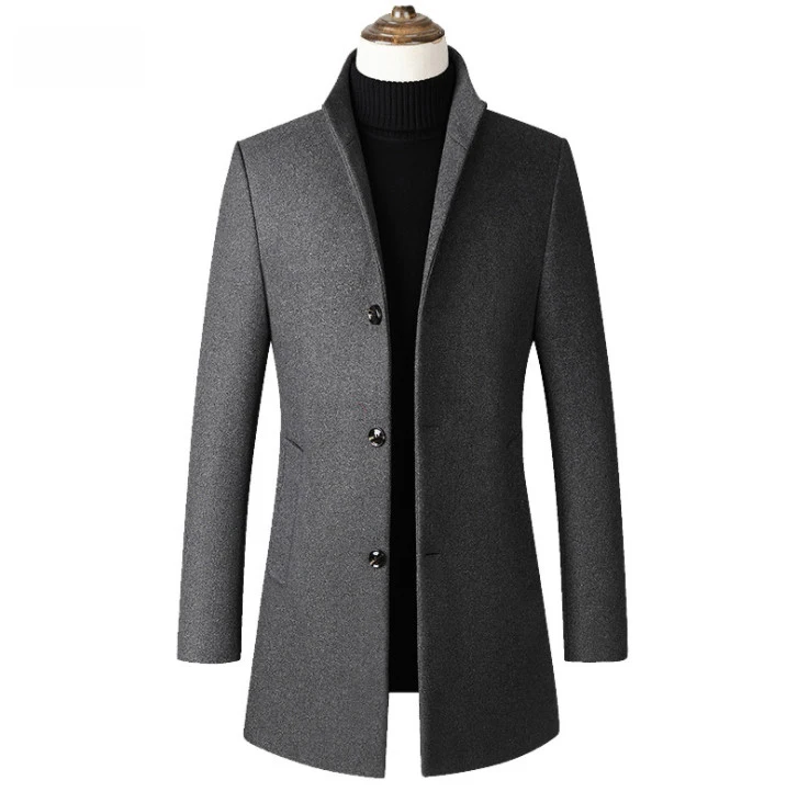 Зимняя шерстяная одежда куртка для мужчин высокого качества Шерстяное Пальто Повседневное тонкий воротник Шерстяное Пальто мужское длинное хлопковое пальто с отложным воротником
