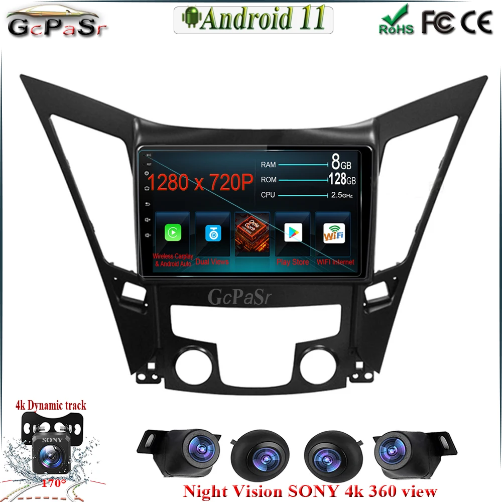 Автомобильный мультимедийный плеер, автомагнитола 9 ''на Android 11, с GPS, видеоплеером, для Hyundai Sonata 6 YF 2009 - 2014