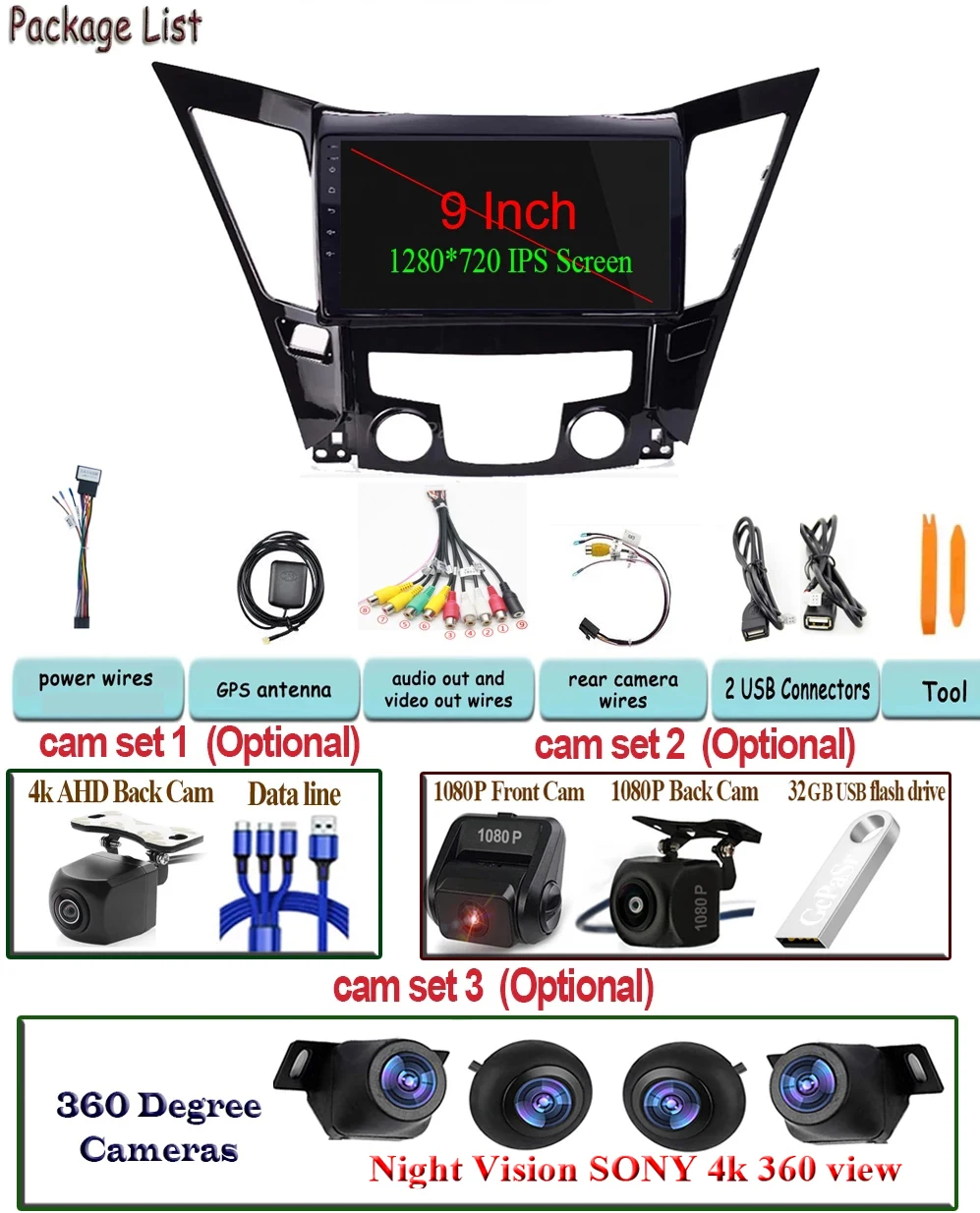 Автомобильный стерео Мультимедийный проигрыватель 360, камера для H...