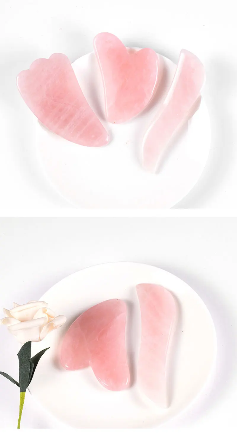 Массажер для лица с розовым кварцем, 3 шт.компл., массажер гуаши с кристаллами камня, нефритовый массажер для тела, лица, глаз, скребок акупунктура, скребок для гуаши